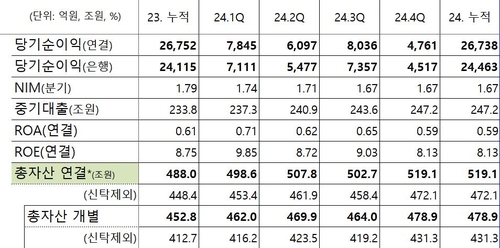 세부적으로 이자 이익은 7조2천761억원, 비이자이익은 2천542억원으로 각 2.6%, 48.0% 감소했다.