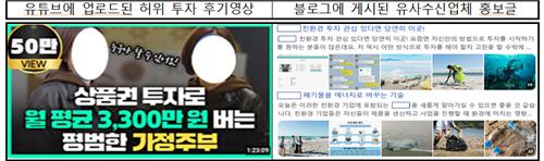 "월 3천300만원 버는 주부", "월 700만원으로 노후 대비" 등 초고수익을 제시하는 자극적인 섬네일이나 문구를 달고 수백개의 긍정적인 조작 댓글로 투자자들을 현혹한 것으로 파악됐다.