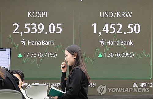 전날 코스피 지수는 전장보다 17.78포인트(0.71%) 오른 2,539.05에 장을 마감하며 사흘 만에 상승세로 전환했다.