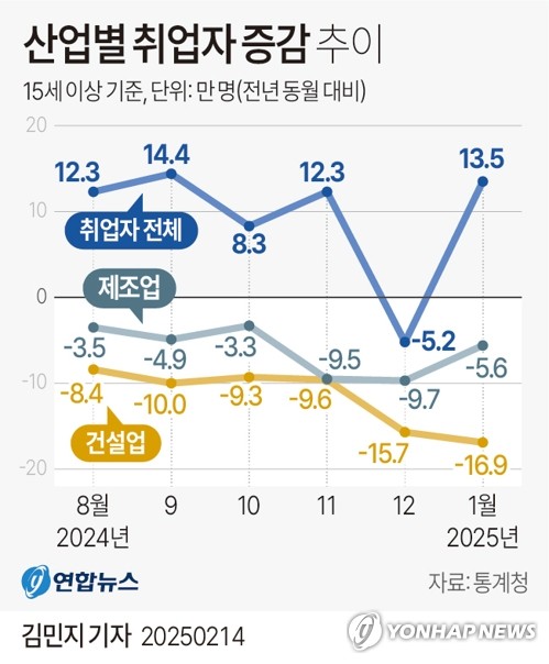 건설업 17만↓·2013년 이후 최대폭 감소…'양질 일자리' 제조업 7개월째 줄어