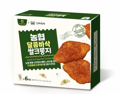 ▲ 농협식품은 신라명과와 공동 개발한 '농협 달콤바삭 쌀크룽지'를 출시했다. 크루아상 생지를 누룽지처럼 납작하게 눌러 만든 빵으로, 국산 쌀가루를 사용해 바삭한 식감을 살렸다.