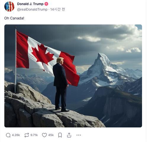저스틴 트뤼도 캐나다 총리는 지난주 재계 인사들과 만나 '캐나다를 미국의 51번째 주로 흡수하겠다'는 트럼프의 얘기가 "진짜"라고 판단하고 있다며, 트럼프의 욕심이 캐나다의 풍부한 천연자원과 관련이 있다고 설명했다.
