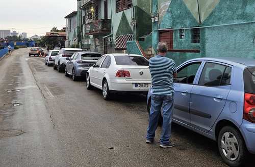 연료 부족에 주유소 골목 차량 대기 행렬 여전…"전력난에 벌써 여름 걱정"