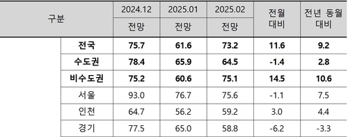지역별로는 대구(48.1→72.7)가 24.6포인트 올라 상승 폭이 가장 컸다.