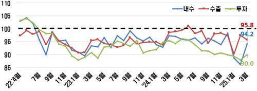 BSI 전망치는 2022년 4월(99.1) 100 아래로 떨어진 뒤 36개월 연속 기준치를 밑돌고 있다.