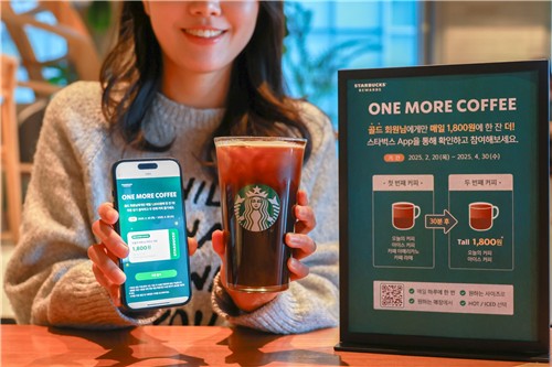 (서울=연합뉴스) 전재훈 기자 = 스타벅스 코리아는 멤버십 골드 회원을 대상으로 아메리카노 등 커피 음료를 주문하면 커피 60% 할인 쿠폰을 제공하는 '원 모어 커피'(one more coffee) 행사를 시범 운영한다고 20일 밝혔다.