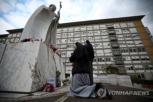 교황청은 20일(현지시간) 오후 성명을 통해 "교황의 임상 상태가 조금씩 나아지고 있다"며 "현재 발열이 없고 혈류 관련 지표도 안정적"이라고 밝혔다.
