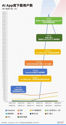 신문이 인용한 데이터 분석 플랫폼 퀘스트모바일에 따르면 지난달 11일 애플 앱스토어와 안드로이드 앱 마켓에 출시된 딥시크 앱은 지난 9일 기준 누적 다운로드 1억1천만건을 넘었다.