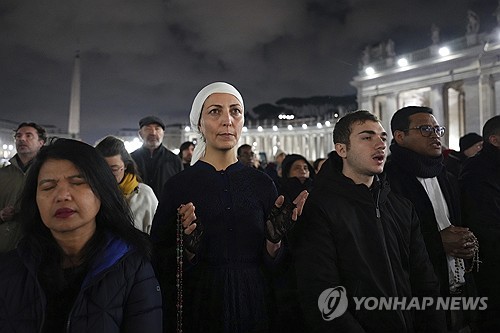 바티칸 성 베드로 광장에는 신자 수천명 모여 교황 쾌유 기원