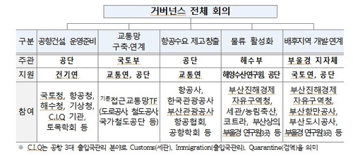 이 거버넌스는 지난해 12월 6개 관계기관이 체결한 업무협약의 후속 조치로, 가덕도신공항과 부산항 진해신항 인프라 건설과 함께 부·울·경 활성화 전략을 논의하기 위해 만들어진 협의체다.