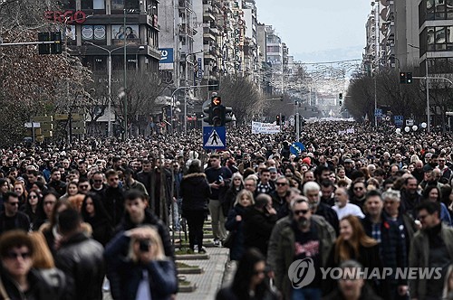 28일(현지시간) AFP·로이터통신에 따르면 이날 그리스 전역에서 수십만명의 시민들이 철저한 진상 규명과 책임자 처벌을 요구하며 거리로 나섰다. 전국적으로 경찰 추산 약 30만명이 시위에 참여했다. 그리스 현지 언론은 이번 시위가 역대 최대 규모라고 전했다.