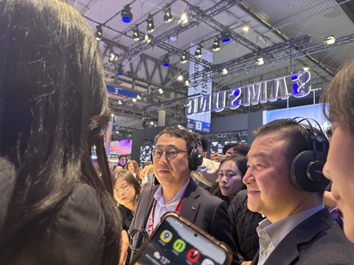 (바르셀로나=연합뉴스) 조현영 기자 = 이동통신사 수장들과 유상임 과학기술정보통신부 장관이 3일(현지 시간) '모바일 월드 콩그레스 2025'(MWC 2025) 삼성전자 부스를 찾았다.