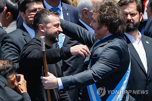 (부에노스아이레스=연합뉴스) 김선정 통신원 = 볼로디미르 젤렌스키 우크라이나 대통령을 '친구'라고 부르고 우의를 과시했던 하비에르 밀레이 아르헨티나 대통령이 최근 들어 우크라이나를 침략한 러시아 쪽으로 기우는 행보를 보인다는 지적이 나온다.