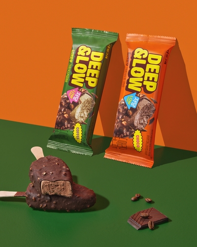 딥앤로우에서 처음으로 선보이는 제품은 크런치초코바와 크런치커피바 등 아이스 밀크바 2종이다. 열량은 각각 153㎉, 159㎉다.