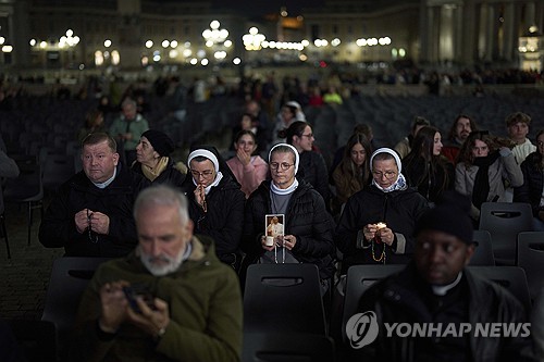 지난달 24일부터 로마 거주 추기경 등 고위 성직자들이 매일 밤 9시 성 베드로 광장에 모여 교황의 쾌유를 위한 묵주기도를 봉헌하고 있으며 수천 명의 신자도 기도에 함께하고 있다. 이날 묵주기도회는 교황청 성직자부 장관인 유흥식 추기경이 주례한다.