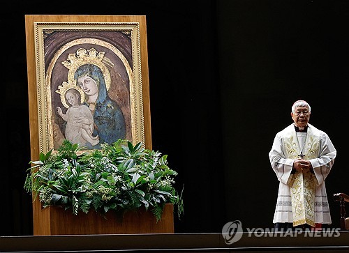 바티칸 성 베드로 대성전 앞 단상에는 '교회의 어머니 성모 성화'가 자리했다. 그 앞에서 유 추기경을 비롯한 로마교구 및 교황청 부서 추기경들을 비롯한 주교, 신부, 남녀 수도자들, 그리고 수백명의 신자들이 묵주 기도를 바쳤다.