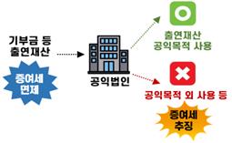 세법에서는 공익활동을 지원하기 위해 공익법인이 출연받은 재산에 증여세를 면제하는 등 세제 혜택을 제공하는 한편 이런 혜택이 취지대로 쓰이도록 일정한 의무를 부여하고 있다.