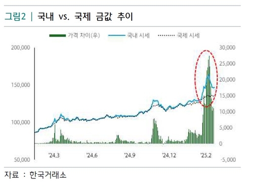 다만 이후 국내 금 가격이 급격하게 떨어지면서 현재는 국제 금 시세와 큰 차이가 없는 상황이다.