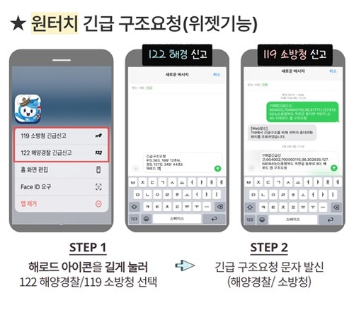 이번 기능 강화로 앱을 실행하지 않아도 이용자의 위치를 알려 구조 요청할 수 있는 '원터치 긴급 구조요청'과 청각장애인을 위한 '사고 상황 그림 선택해 구조 요청하기', '앱 이용자 간 구조 요청 정보 실시간 공유' 등의 기능이 추가됐다고 해수부는 설명했다.