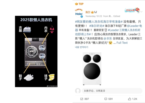 홍콩 성도일보 등에 따르면 하이얼은 전날 웨이보(微博·중국판 엑스) 공식 계정을 통해 "네티즌이 재촉해온 게으름뱅이용 세탁기가 왔다"며 출시 사실을 공개했다.