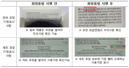 (서울=연합뉴스) 최현석 기자 = 식품의약품안전처는 지난달 7일부터 화장품에 각종 표시사항의 기재 위치를 명확히 하도록 개정된 화장품법이 시행됨에 따라 포장이나 용기의 바깥면에서 주요 정보를 확인할 수 있다고 21일 안내했다.
