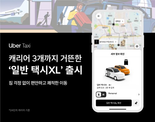 (서울=연합뉴스) 김현수 기자 = 글로벌 택시 호출 플랫폼 '우버 택시'가 짐이 많은 승객을 위한 이동 서비스 '일반 택시XL'을 출시했다고 2일 밝혔다.
