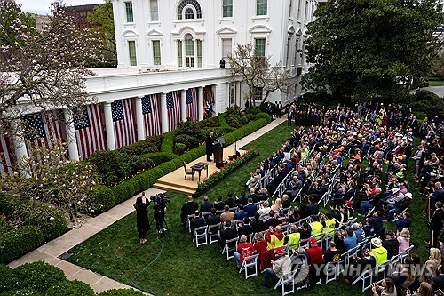 이날 오후 4시8분께 백악관 로즈가든에서 성조기들을 배경으로 연설을 시작한 트럼프 대통령은 "미국인들이여, 오늘은 (미국의) 해방일"이라며 운을 뗐다.