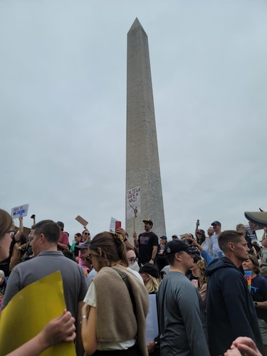 워싱턴 DC의 상징물인 워싱턴기념탑(Washington Monument) 주변에는 트럼프 대통령과 트럼프의 신흥 최측근으로서 연방 정부 구조조정을 주도하고 있는 일론 머스크 테슬라 최고경영자(CEO)에 대한 반대 구호가 울려 퍼졌다.