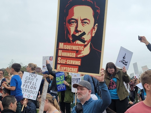 시위 현장에서 머스크 사진은 트럼프 대통령 사진 만큼 빈번하게 볼 수 있었고, 참가자들이 외치는 구호에서도 트럼프 대통령과 그가 나란히 등장하는 경우가 많았다.