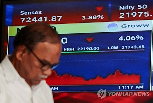 이날 인도 주식시장을 대표하는 니프티50 지수와 BSE 센섹스 지수는 전 거래일 대비 각각 3.23%, 2.98% 하락한 채 장마감됐다. 두 지수 모두 장중 한때 5% 넘게 하락했다.