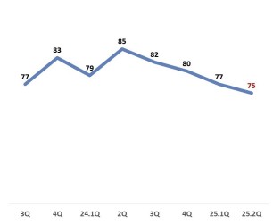 이는 지난 1분기(77)보다 2포인트 하락한 수치다.