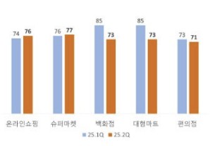 반면 온라인쇼핑(74→76), 슈퍼마켓(76→77)은 소폭 상승했다.