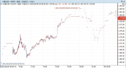 뉴욕장에 1,480원 안팎으로 진입한 달러-원 환율은 관세 협상 기대감에 따른 안전자산 선호 심리가 완화하자 1,471.40원까지 밀렸다.