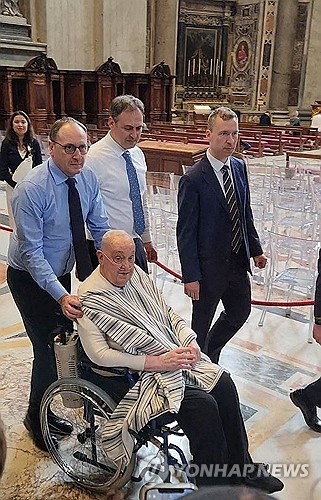 (바티칸=연합뉴스) 신창용 특파원 = 한동안 폐렴을 앓았던 프란치스코 교황이 10일(현지시간) 바티칸 성 베드로 대성전을 깜짝 방문했다.