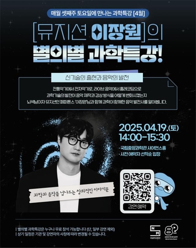 ▲ 국립중앙과학관은 19일 오후 2시 대전 유성구 중앙과학관 사이언스홀에서 밴드 페퍼톤스 멤버 이장원을 초청해 '신기술의 출현과 음악의 발전'을 주제로 '별의별 과학특강'을 진행한다. 참여를 원할 경우 중앙과학관 홈페이지에서 선착순 예약할 수 있으며 잔여석에 한해 당일 현장 신청도 받는다. (서울=연합뉴스) (끝)