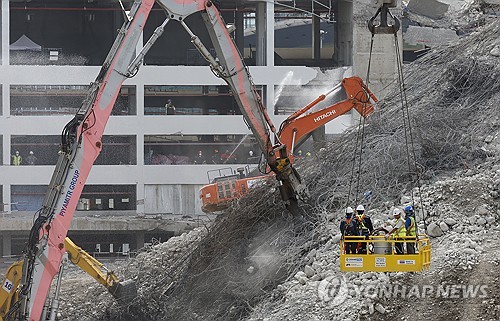 (방콕=연합뉴스) 강종훈 특파원 = 지난달 발생한 미얀마 강진으로 붕괴한 태국 방콕 빌딩 공사장 잔해 제거가 속도를 내면서 사망자 수가 급격히 늘고 있다.
