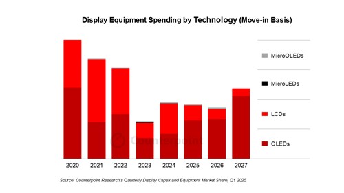 카운터포인트리서치 관계자는 "중국은 2027년까지 매년 장비 지출에서 선두를 유지할 것"이라며 "신흥주자로는 인도가 LCD 내수 투자를 중심으로 인프라를 확장할 전망"이라고 말했다.