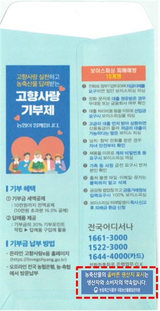 ▲ 국립농산물품질관리원(농관원)은 농협중앙회와 함께 판매자의 농산물 원산지 표시와 소비자의 원산지 확인을 요청하는 내용의 공익 광고를 진행한다고 28일 밝혔다. 농관원과 농협은 이달부터 전국 NH농협과 지역 농축협에서 사용하는 현금 봉투에 광고 문구를 표시했다. 또 오는 6월부터는 농협 농촌사랑상품권 봉투에도 공익 광고 문구를 표시할 예정이다. (서울=연합뉴스)
