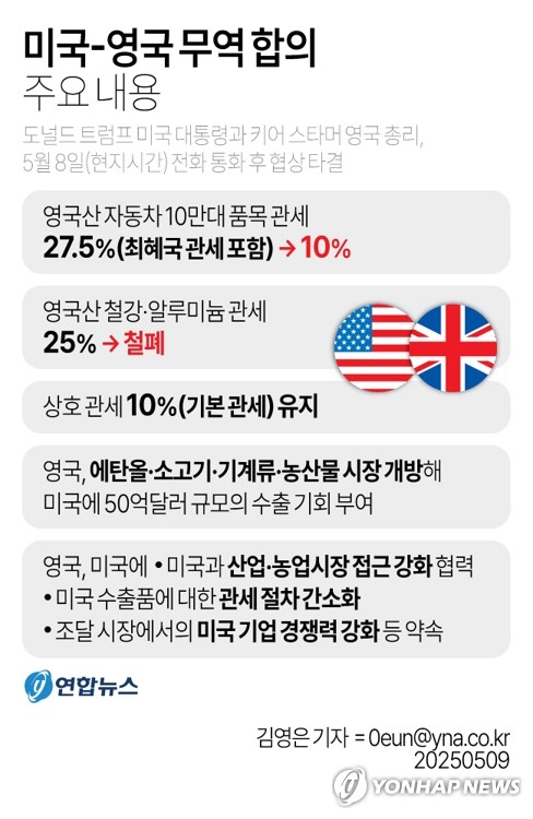 다만 미국은 무역적자 해소를 위해 영국에 부과하기로 했던 10%의 상호관세는 그대로 유지하기로 했다.