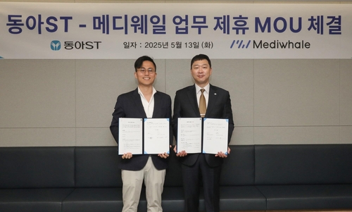 (서울=연합뉴스) 조승한 기자 = 동아에스티[170900]는 13일 서울 동대문구 본사에서 의료 인공지능(AI) 기업 메디웨일과 디지털 헬스케어 사업 협력을 위한 업무협약(MOU)을 맺었다고 14일 밝혔다.
