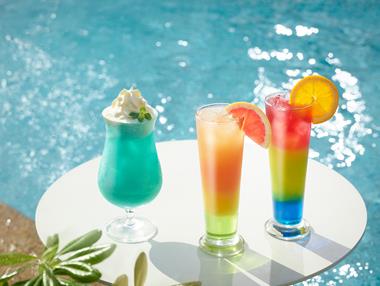 ▲ 제주신라호텔은 여름 방학을 앞두고 어린이 고객을 위한 '키즈 칵테일'을 선보인다. 빨강과 노랑, 파랑 빛깔의 재료들이 조화롭게 어우러진 '레인보우'와 그린애플 시럽의 초록빛에 자몽주스의 핑크빛이 더한 '핑크 플라워', 달콤한 파인애플주스에 부드러운 코코넛 크림을 올린 '블루 스카이' 3종으로 풀사이드바에서 주문할 수 있다.