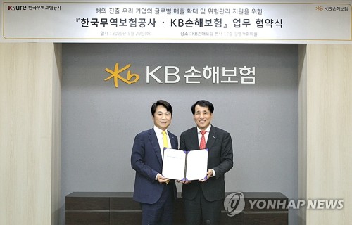 (서울=연합뉴스) 이슬기 기자 = 한국무역보험공사는 20일 서울 강남구 KB손해보험 본사에서 KB손해보험(KB 손보)과 해외 진출한 한국 기업의 글로벌 매출 확대 및 위험 관리를 지원하기 위한 업무협약(MOU)을 체결했다고 밝혔다.