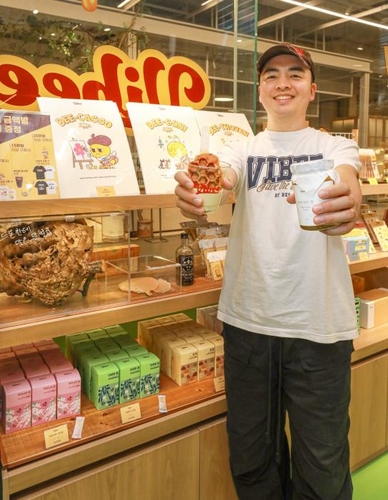 ▲ 현대백화점 = 더현대 서울 지하 1층 식품관에서 다음 달 5일까지 인기 양봉 유튜버 '프응'이 론칭한 꿀 전문 브랜드 '바이비'(Vibee) 팝업스토어를 운영한다. 팝업에서는 다양한 꿀 제품과 꿀을 활용한 음료·베이커리를 판매한다. 대표 상품은 꿀로플, 꿀크림라떼, 미니 벌꿀 3종 세트, 꿀 3종 실속 선물세트 등이 있다. 프응이 직접 채밀한 벚꽃꿀과 야생화 숙성꿀은 올해 한정으로 더현대 서울에서만 단독으로 만나볼 수 있다. 바이비 대표 캐릭터와 사진 찍을 수 있는 봉민이 포토부스 체험, 구매 금액대별 사은품 증정 이벤트, 무료 꿀 시식 등 체험형 콘텐츠도 선보인다.