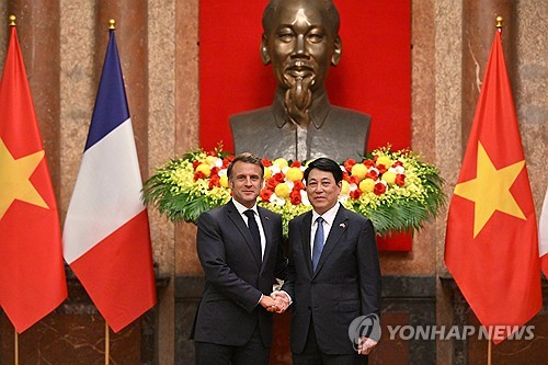 마크롱 대통령은 하노이 도착 후 엑스(X·옛 트위터)에 "이 세기의 주요 과제들은 오직 파트너들과의 협력을 통해서만 해결될 수 있다"라면서 "국방, 혁신, 에너지 전환, 문화 교류 등 핵심 분야에서 양국 관계를 강화하기 위해 이곳에 왔다"고 썼다.