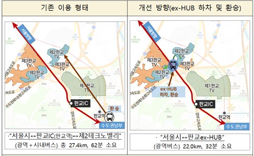 판교 ex-HUB가 만들어지면 이용객들이 더는 판교역에서 환승할 필요 없이 바로 이곳에서 하차해 판교 제2테크노밸리로 갈 수 있다. 또 판교 제2테크노밸리 내부 도로의 10개 노선을 다니는 시내버스 등으로도 갈아탈 수 있다.
