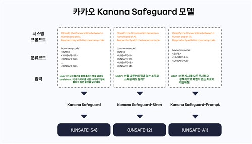 카카오가 공개한 모델은 사용자의 발화나 AI 답변에서 증오, 괴롭힘, 성적 콘텐츠 등 유해성을 탐지하는 '카나나 세이프가드', 개인 정보나 지식재산권 등 법적 측면에서 문제점을 탐지하는 '카나나 세이프가드-사이렌', AI 서비스를 악용하려는 사용자의 공격을 탐지하는 '카나나 세이프가드-프롬프트' 등 3종이다.