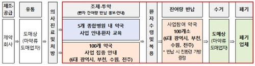사업에 참여하는 9개 지역 100개 약국은 마약류 의약품을 처방받은 환자에게 수거·폐기 사업을 안내하고 사용 후 남은 의료용 마약류를 반납받는다.