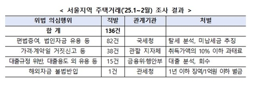 국토부는 서울시, 한국부동산원 등 관계기관과 합동으로 올 1∼2월 서울지역 주택 이상거래 합동 현장점검 및 기획조사를 진행해 위법 의심거래 108건을 적발했다고 28일 밝혔다.