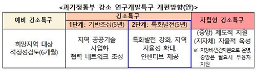 과기정통부는 이날 예비 강소특구가 6개월 이후 선정되면 1단계 기반조성에 5년, 2단계 특화발전에 5년을 지원하고, 이와 별도로 지자체가 자율적으로 육성하는 자립형 강소특구도 운영하는 사업 개편방안 등을 소개했다.