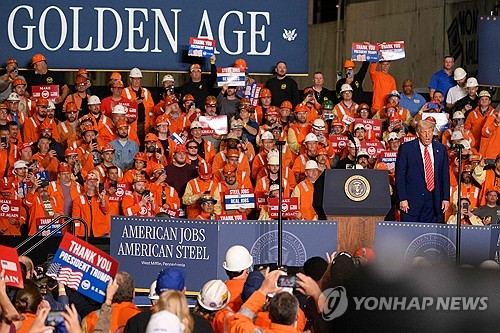 앞서 트럼프 대통령은 지난 23일 그간 국가안보 우려를 이유로 막았던 인수를 사실상 승인하는 결정을 내리면서 이날 US스틸 방문 및 유세 연설을 예고한 바 있다.
